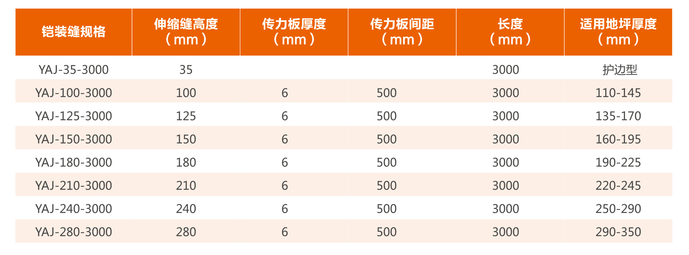 YAJ型地坪伸缩缝连接件的主要类型(材质和标准):