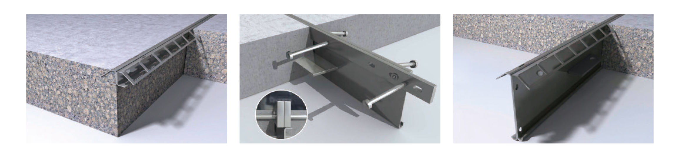 A型铠装缝由2mm的镀锌钢板或不锈钢板经过激光切孔折弯成形,焊接传力杆/板伸缩套,易断塑料螺栓等组成。